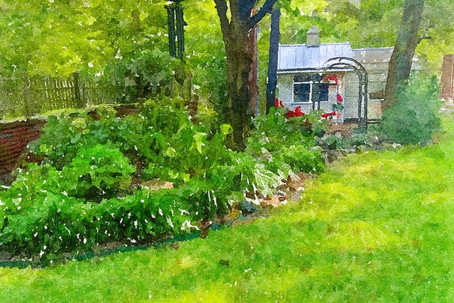 This darling garden is a true gardeners garden. In fact, all of the plant material is from friends, family, and neighbors of the garden owner. The gardener describes her garden as her “happy place,” and the backyard is serene with sounds of wind chimes. You will find the gardener is playing her original song “In My Garden” on her dulcimer. The home was built in 1929 and contains many original stained-glass windows. Plant materials to note include a hyacinth arch, butterfly magnolia, peonies, moon flowers, an original red bud, and many garden vegetable and herb boxes.